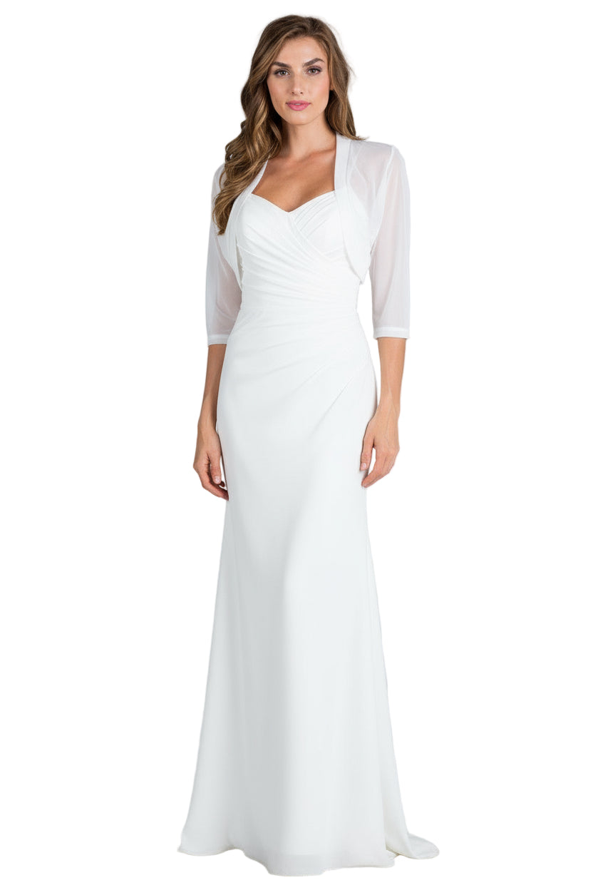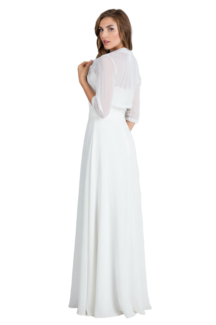 Elevate your event look with this flirty bolero shrug that's equal parts chic and charming. Crafted from lightweight sheer chiffon, it drapes beautifully over dresses and tops while the cropped, fitted silhouette keeps things modern and flattering. The open front design lets you layer it your way, while three-quarter sleeves add just the right touch of sophistication. Perfect for weddings, graduation, prom or any formal parties, calling for a little extra polish and personality.