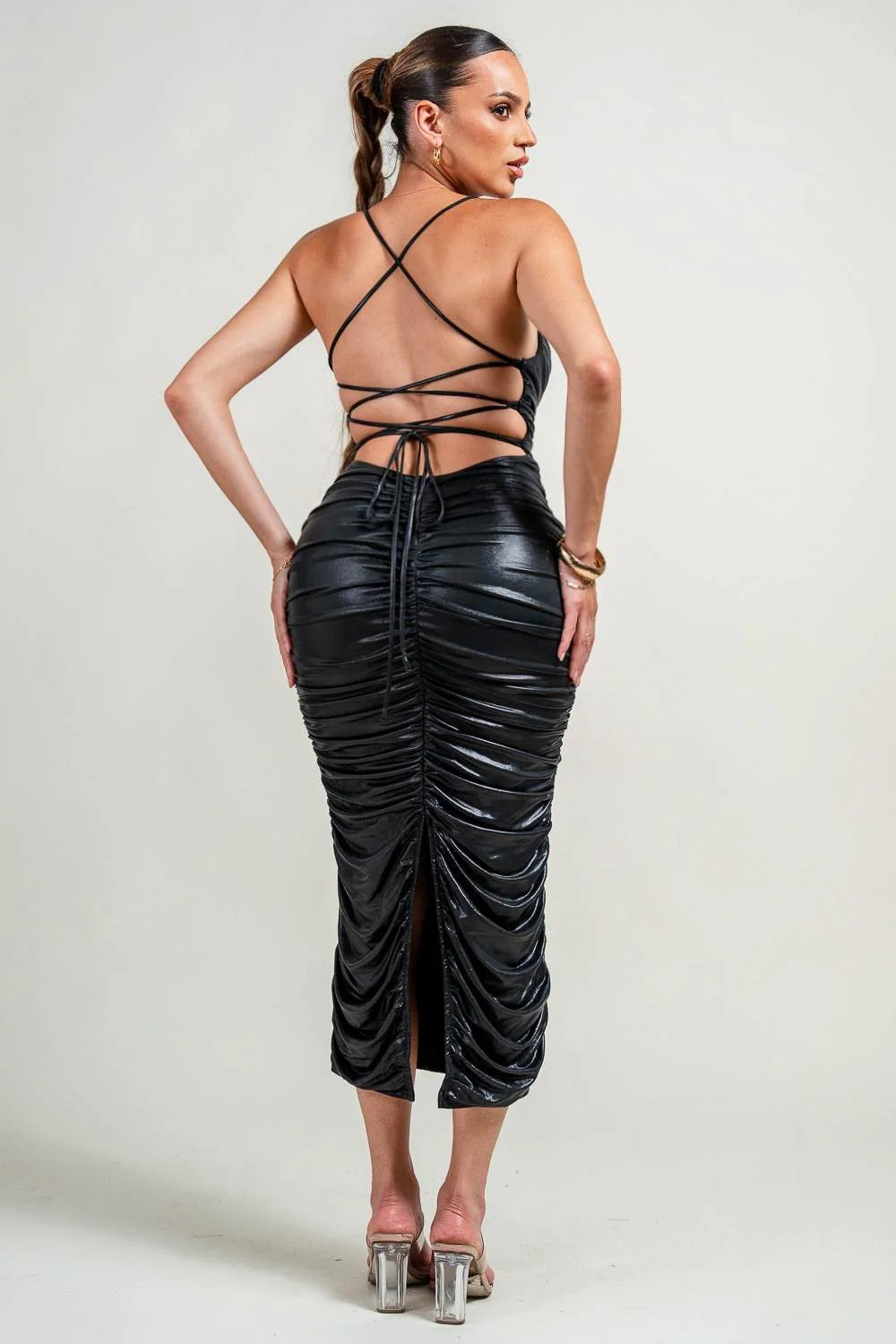 The Modena Midi is a playful celebration of style with its ruched bodice and low waist that highlight your curves beautifully.