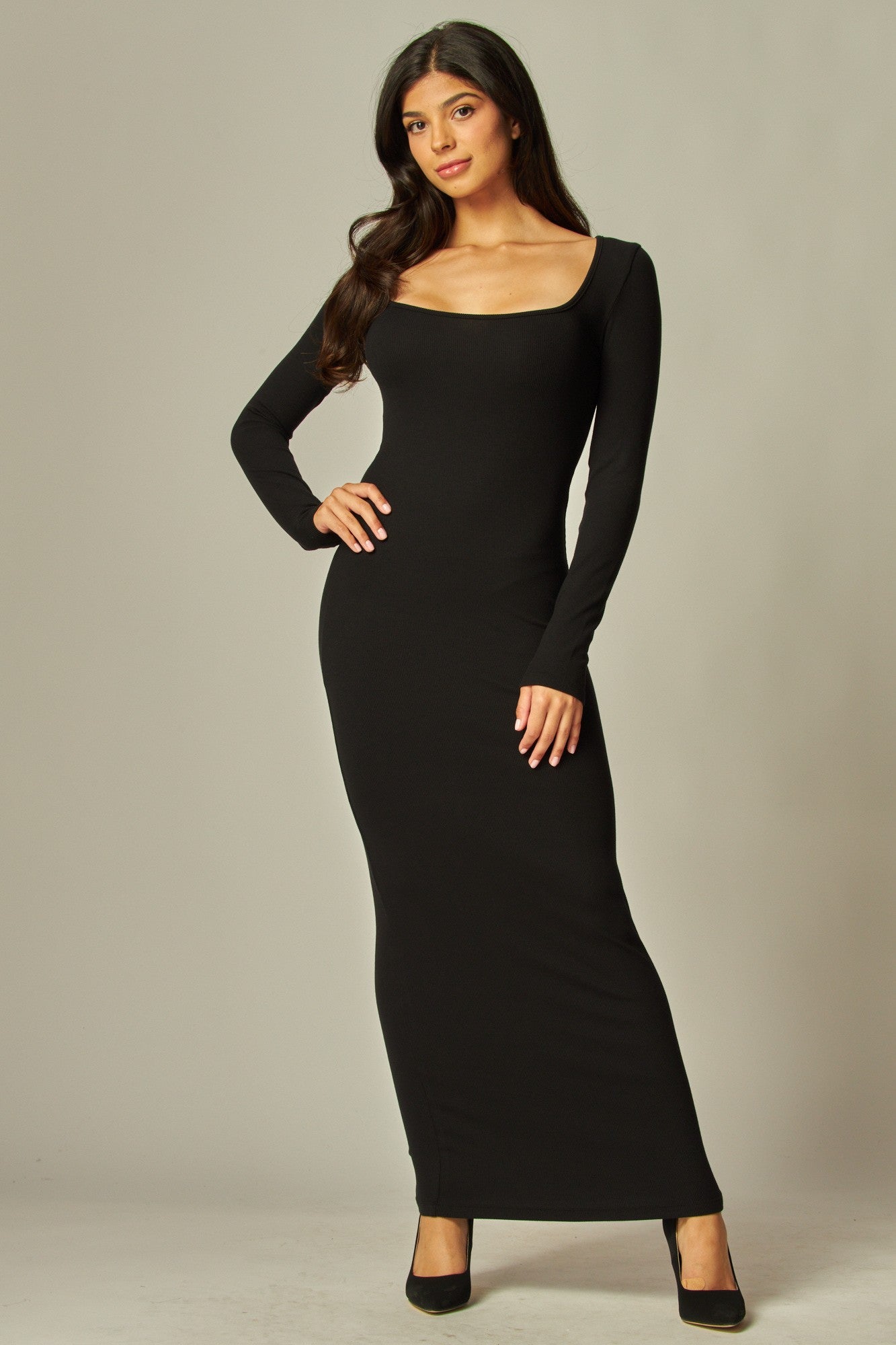 The Santa Fiora Dress is your favorite soft lounge look, now with sleeves for extra charm. Its slinky silhouette hugs every curve, while the ultra-flattering square neckline adds a touch of sass. The drapey long ribbed slip moves with you, making comfort and style the perfect pair. Get ready to turn heads and feel fabulous!