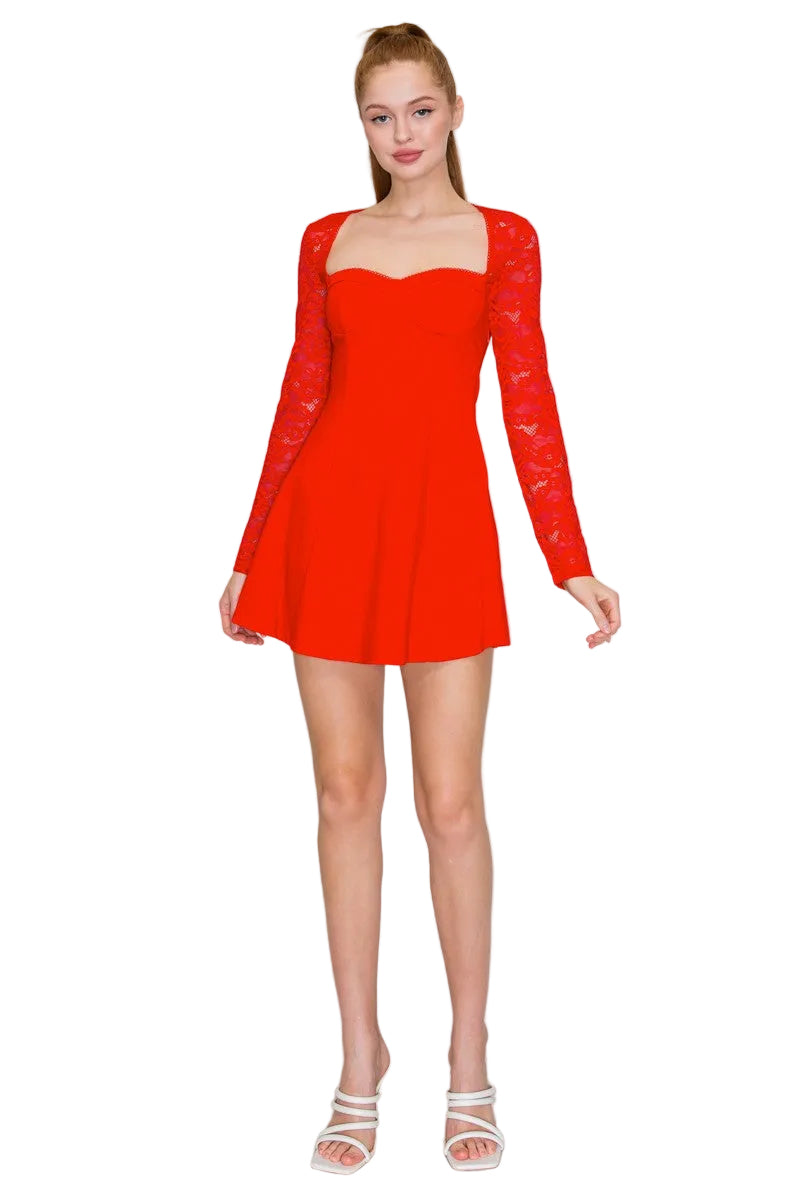 Elegant and versatile, the Bianca Mini combines delicate lace sleeves with a structured silhouette that flatters. The sweetheart neckline and fitted bodice create a refined look, while the contrasting textures—smooth fabric paired with supportive construction—ensure both comfort and polish. Perfect for evenings out or special occasions, this mini dress transitions effortlessly from day to night.