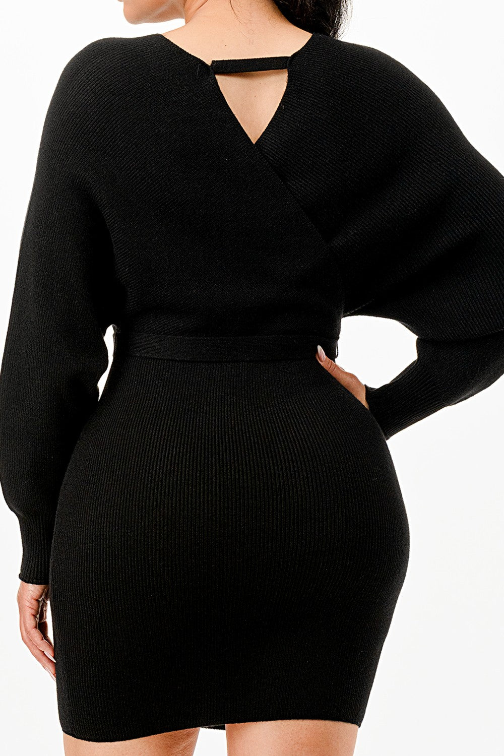 Turn heads in the Aspen Sweater Dress, featuring a playful off-shoulder wrap design that highlights your neckline. The belted waist flatters your silhouette, while the cozy ribbed fabric keeps you comfy all day. With long sleeves and a daring backless detail, this dress brings a fun mix of warmth and sass to your wardrobe. Perfect for cozy nights out or stylish daytime looks!
